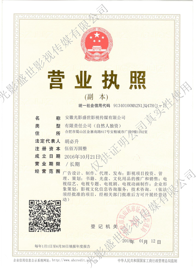 光影盛世傳媒既不是個人、也不是工作室,而是一家注冊資金500萬且團(tuán)隊有著10年從業(yè)經(jīng)驗的專業(yè)影視傳媒公司。如下圖所示。
